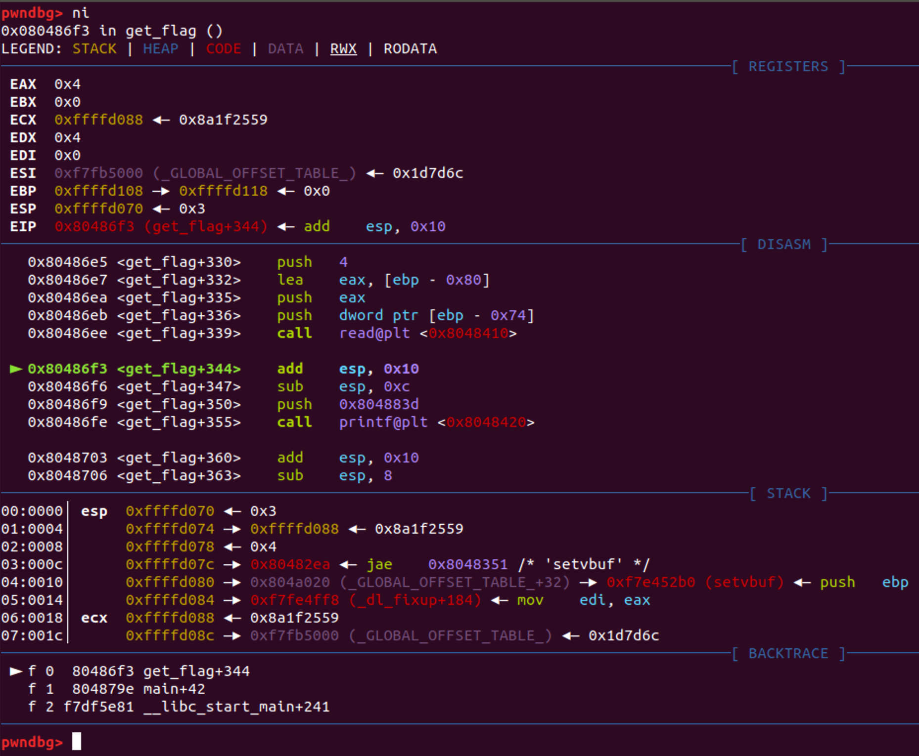 0x080486f3 <+344>: add esp,0x10