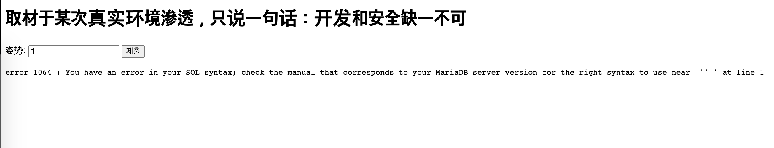 느낌상 DB에 특정 쿼리를 날려서 결과 값을 뿌려주는 듯 싶다. 몇가지 입력을 추가로 시도해본다.